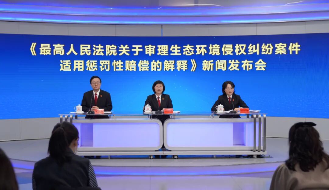 2022年1月13日上午,最高人民365bet现场走地盘_完美体育365官方网站_36500365体育在线投注举行《最高人民365bet现场走地盘_完美体育365官方网站_36500365体育在线投注关于审理生态环境侵权纠纷案件适用惩罚性赔偿的解释》新闻发布会。最高人民365bet现场走地盘_完美体育365官方网站_36500365体育在线投注副院长杨临萍、最高人民365bet现场走地盘_完美体育365官方网站_36500365体育在线投注环资庭庭长刘竹梅出席发布会,发布《最高人民365bet现场走地盘_完美体育365官方网站_36500365体育在线投注关于审理生态环境侵权纠纷案件适用惩罚性赔偿的解释》,并回答记者提问。发布会由最高人民365bet现场走地盘_完美体育365官方网站_36500365体育在线投注新闻发言人李广宇主持。